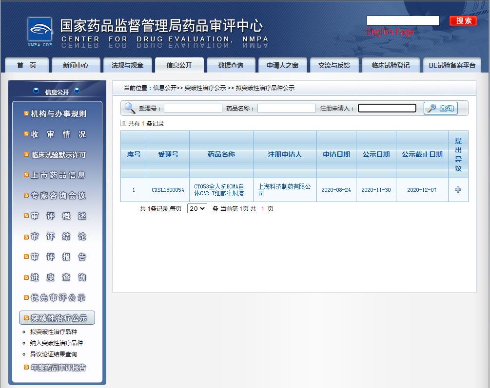 11 月 30 日,國家藥監(jiān)局藥品審評中心(CDE)官網(wǎng)最新公示,上海科濟制藥的 CT053 全人抗 BCMA 自體 CAR-T 細胞注射液擬納入突破性療法,用于治療復發(fā)難治多發(fā)性骨髓瘤。